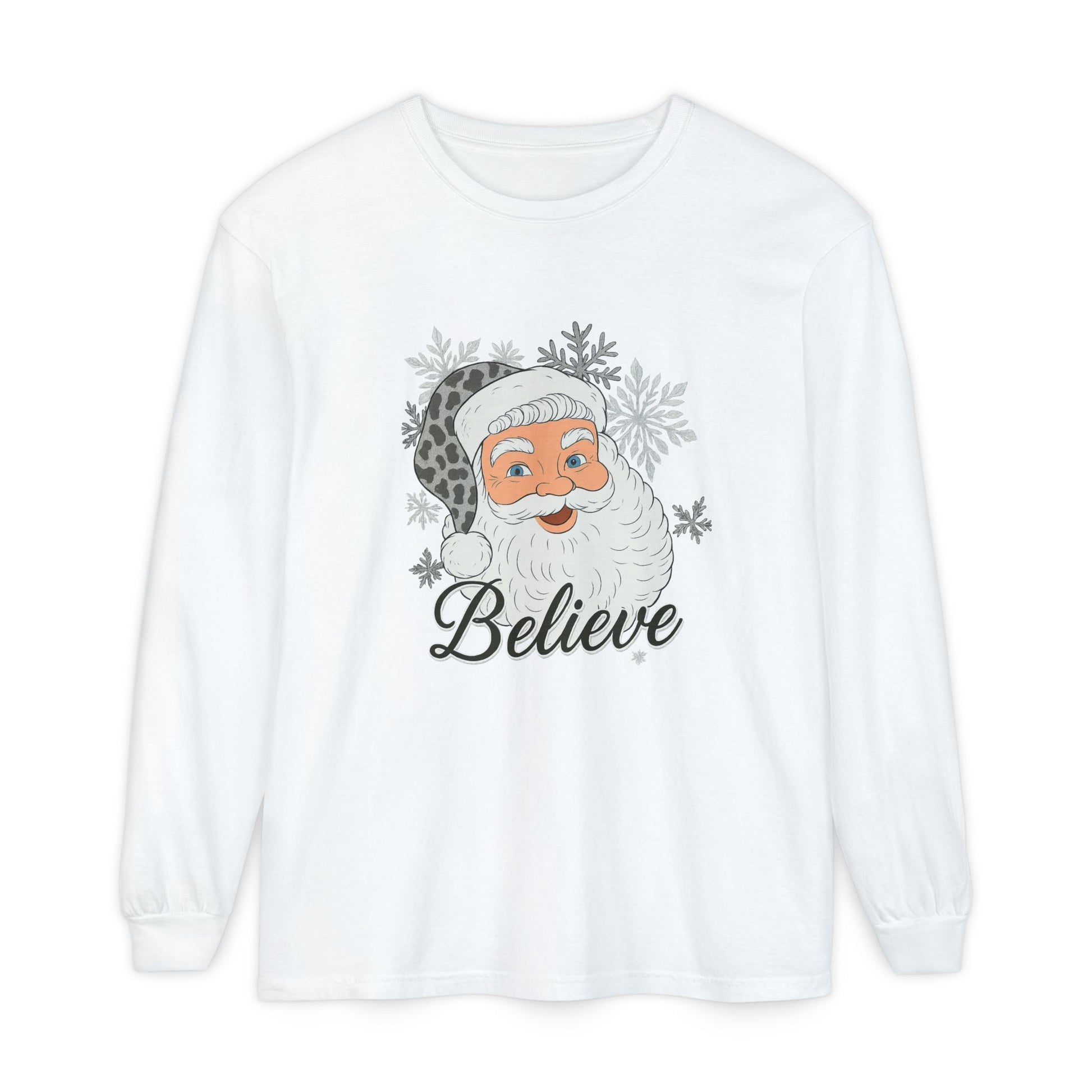 Festive Santa Long Sleeve T-Shirt - 'Believe' Holiday Tee