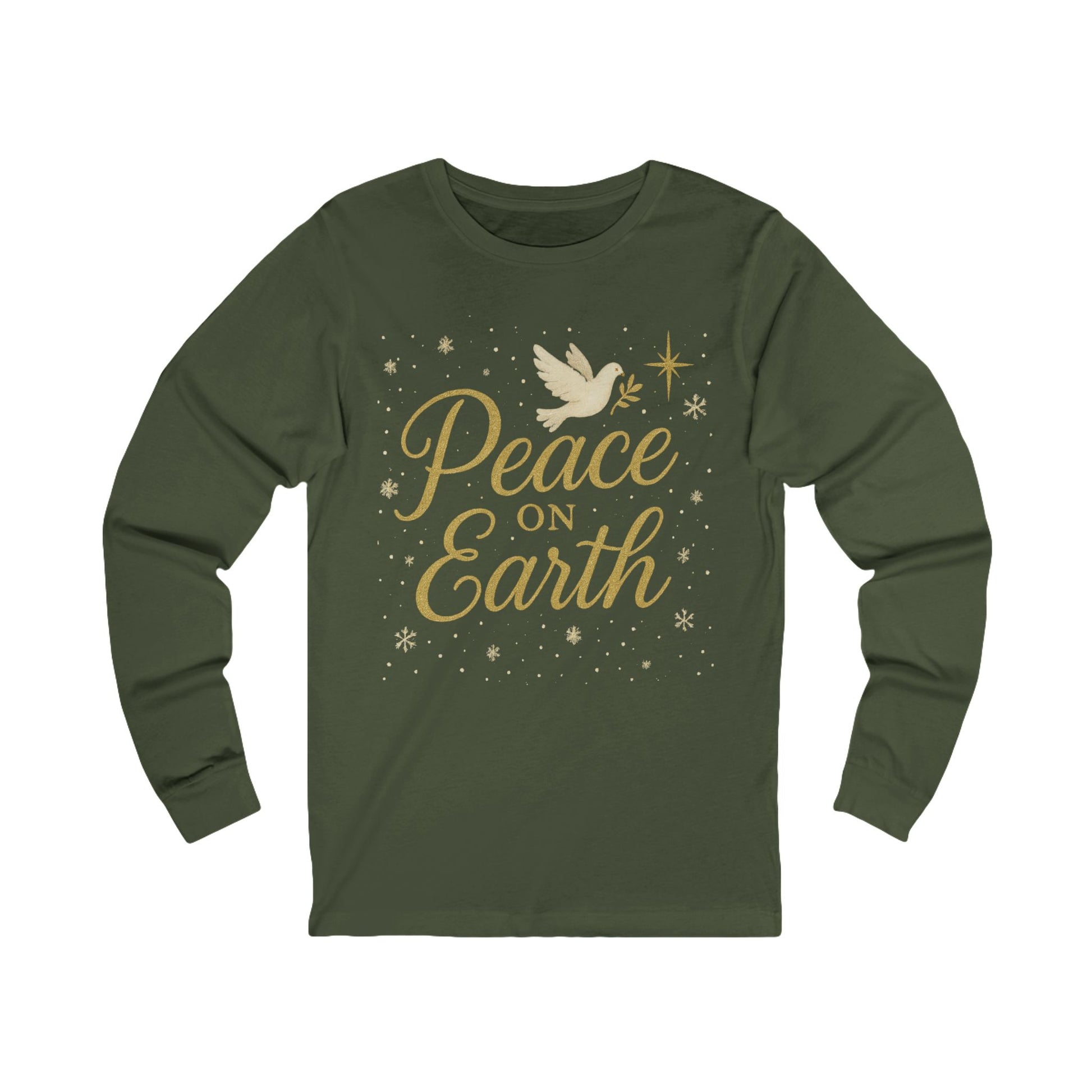 Peace on Earth Long Sleeve Tee — Dove & Script Holiday Shirt